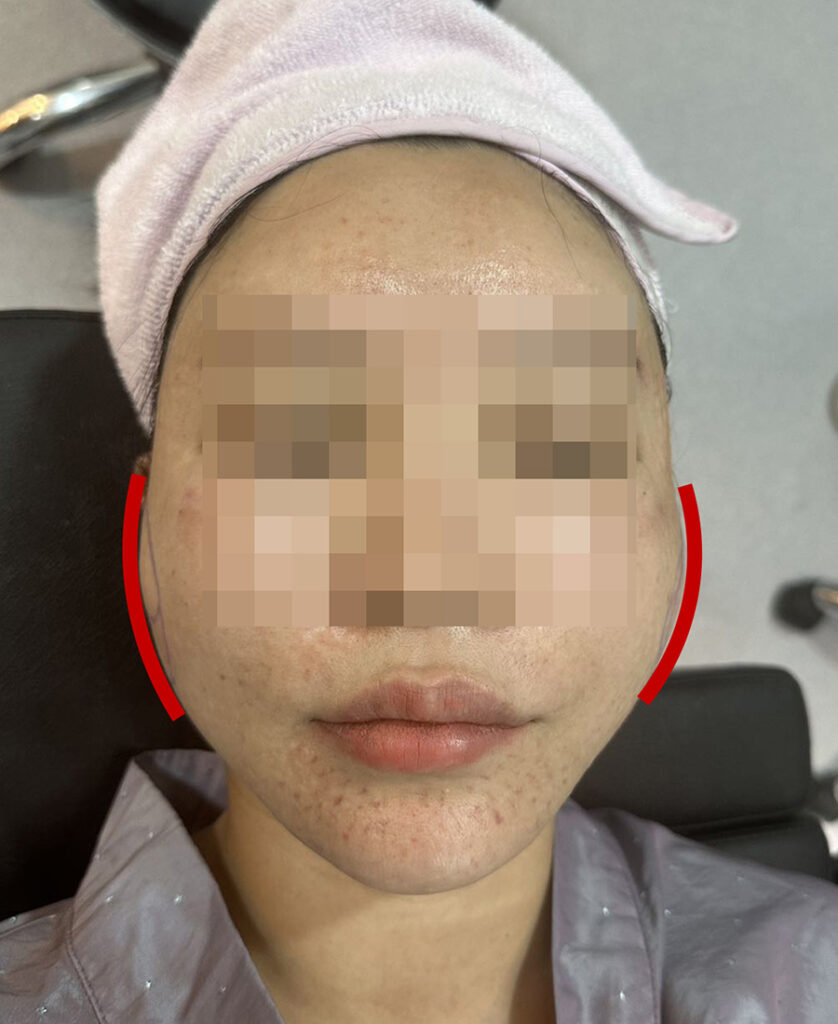 오래 전 타원에서 옆볼 엘란쎄 필러 시술을 받은 환자분으로, 시술을 진행한 옆볼 부위가 심하게 부풀어오르는 증상으로 저희 병원을 찾아주셨습니다.