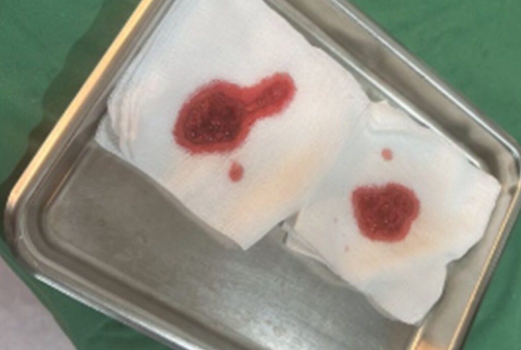 상당히 많은 양의 엘란쎄 필러가 내부에 있었고, 꼼꼼하게 확인해서 모두 제거했습니다. (이 정도로 많은 양이 과증식되어 있으니, 얼굴이 커져보이고 불편감도 심할 수 밖에..)