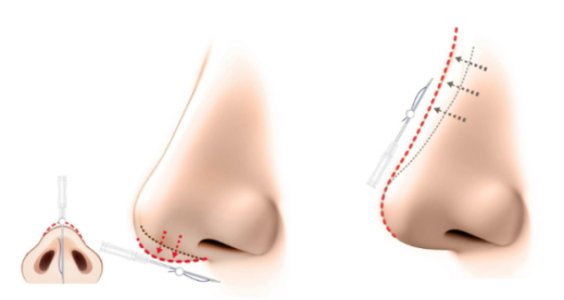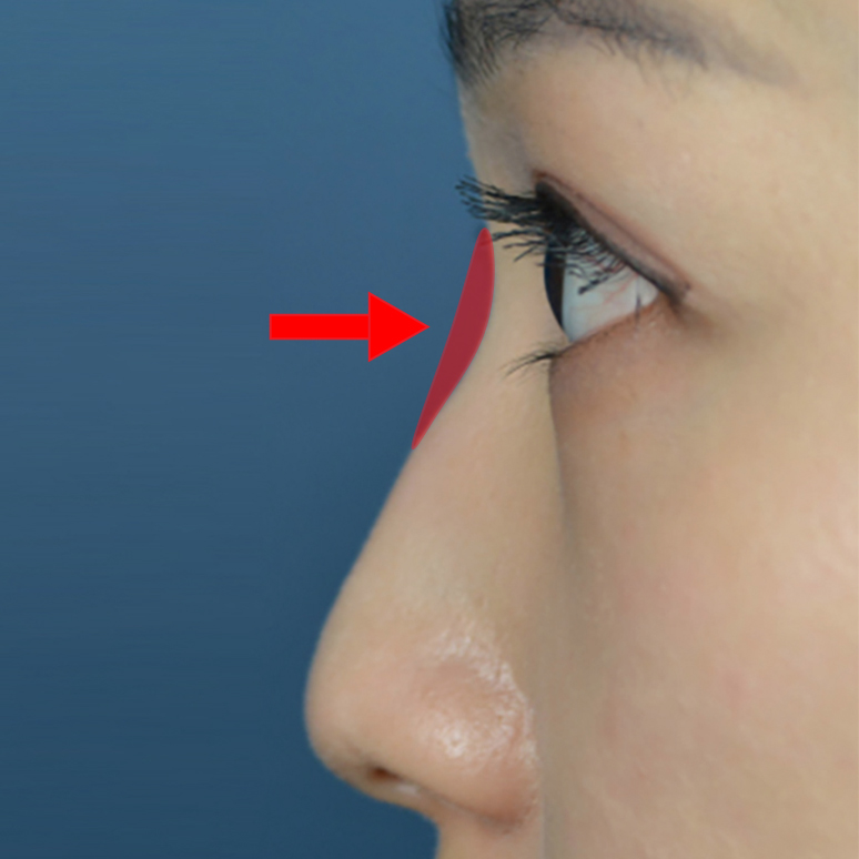 환자분의 코는 콧대가 움푹 들어가 있고, 이로 인해 콧등뼈가 살짝 튀어나와서 매부리처럼 보이는 상황이었는데요.